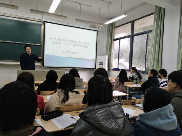 今年日语专业将有15名赴日本二松学舍大学“3+1”留学,这是我院派往日本二松学舍大学的第三批留学生。2月28日,网上赌场 为15名同学举办了赴日前的教育讲座。郭永恩副院长、外事处李月顺副处长以及日语系刘韵超主任参加了本次讲座,讲座由刘韵超主任主持。