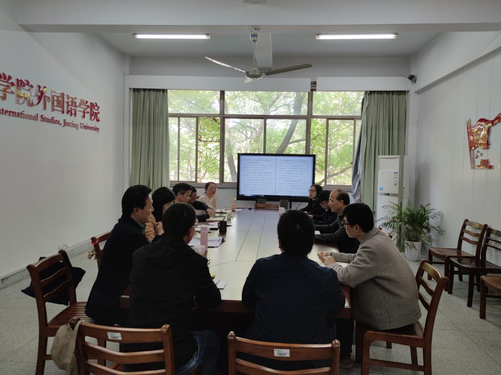 班子其他成员结合分管工作作了补充汇报。学院党委书记周钰从党建和校园文化建设方面,副院长喻锋平从双一流课程建设、大学外语公共课建设、国际专业建设等方面,副院长郭永恩就文化体验实验室建设现状与问题分别进行汇报。