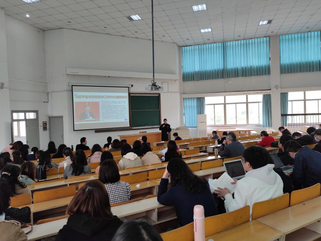 4月15日下午,网上赌场 邀请嘉兴市南湖区新兴街道派出所计福荣警官在外语楼310做反诈骗专题培训。学院全体教师参加培训会,培训会由党委书记周钰主持。