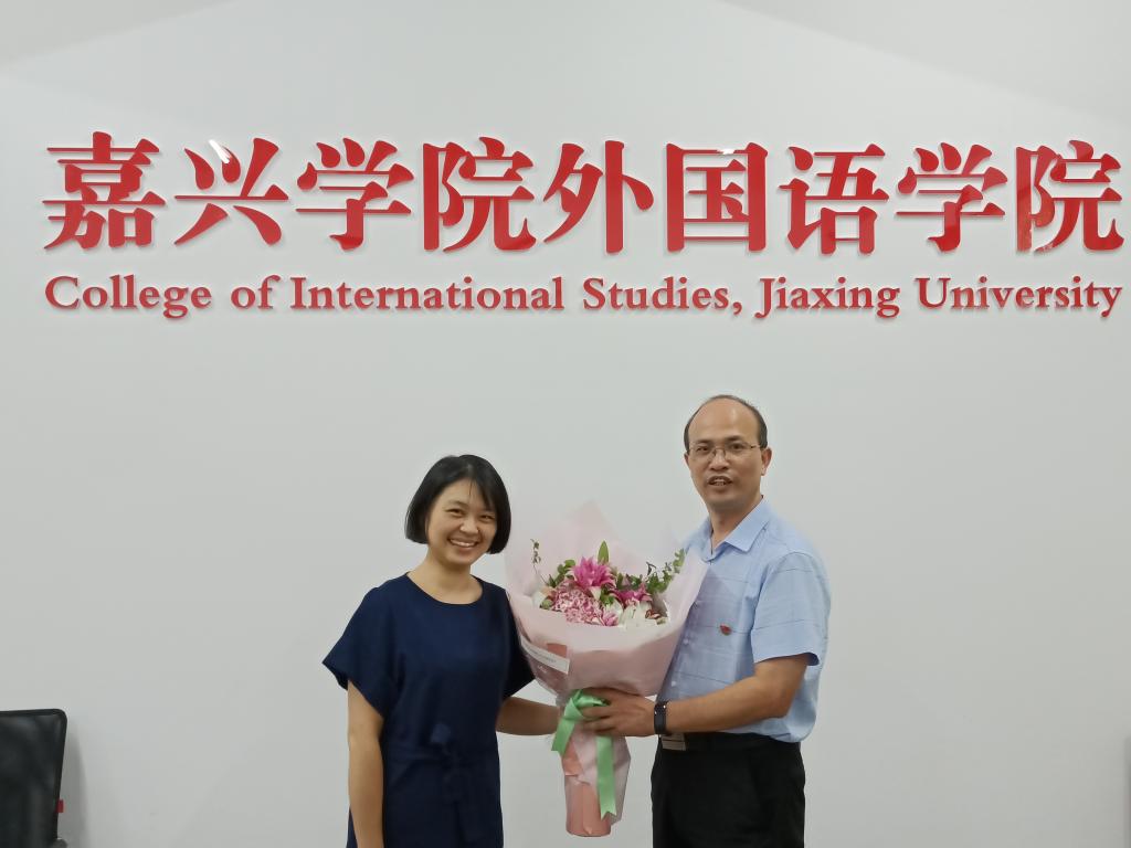 杨培强校长为网上赌场 优秀教师丁澜澜送上节日礼物,感谢丁澜澜老师这些年来一直坚持教学第一线,积极参加教学改革和课程建设,并向丁老师在课程建设方面取得的优异成绩表示热烈祝贺,希望丁澜澜老师能持之以恒走教学改革创新之路,上好每堂课,做精韩语特色课程,争取获评国家级精品在线课程。杨校长还代表学校向网上赌场 全体教师致以诚挚的节日祝福,并希望网上赌场 全体教职工一如既往支持学校工作,为申硕创大贡献外语人的力量。