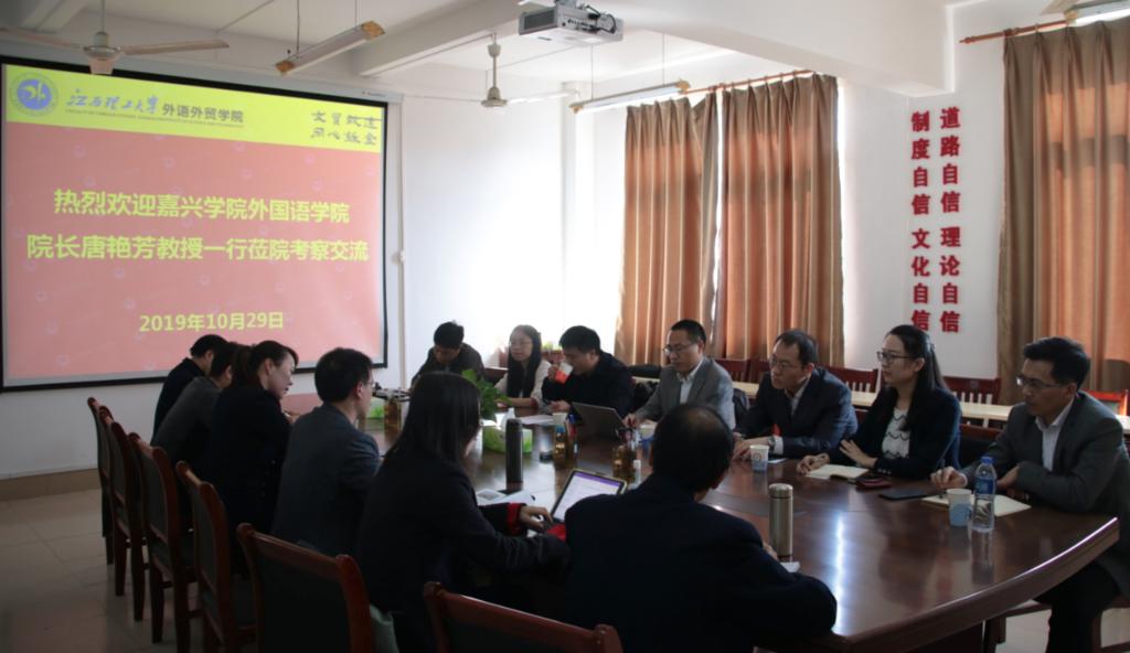 2019年10月29-30日,网上赌场 院长唐艳芳、副院长喻锋平携英语系主任刁俊春、日语系主任刘韵超、大外部主任高万全、党政办主任黄洪等一行6人赴江西赣州,对赣南师范大学网上赌场 和江西理工大学外语外贸学院进行调研和交流。本次调研旨在考察两校外语专业人才培养情况,并就研究生联合培养等事宜进行洽谈。
