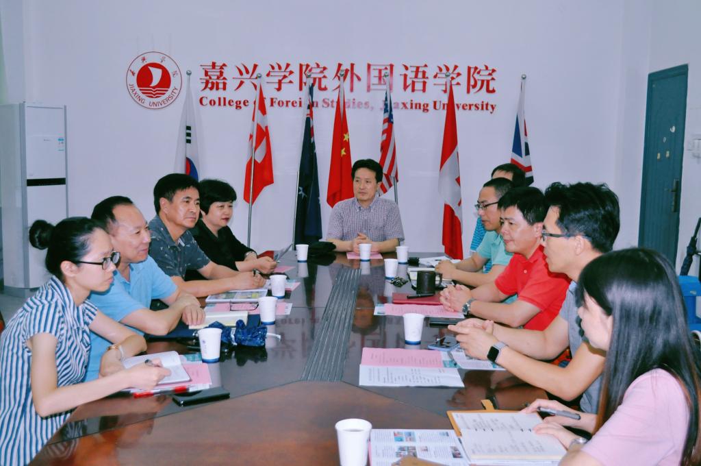 2019年6月25日下午,同济大学浙江学院外语系主任贾中恒、副主任兼系党总支书记邓世俊、副主任兼英语专业教研室主任田兰、公共英语教研室主任逄怡青一行4人来我院考察交流。我院党委书记陶丹玉、院长唐艳芳、副院长郭永恩、副院长喻锋平、英语系副主任刁俊春、大学外语部主任高万全以及大学外语部教研室主任章剑飞出席了座谈会。