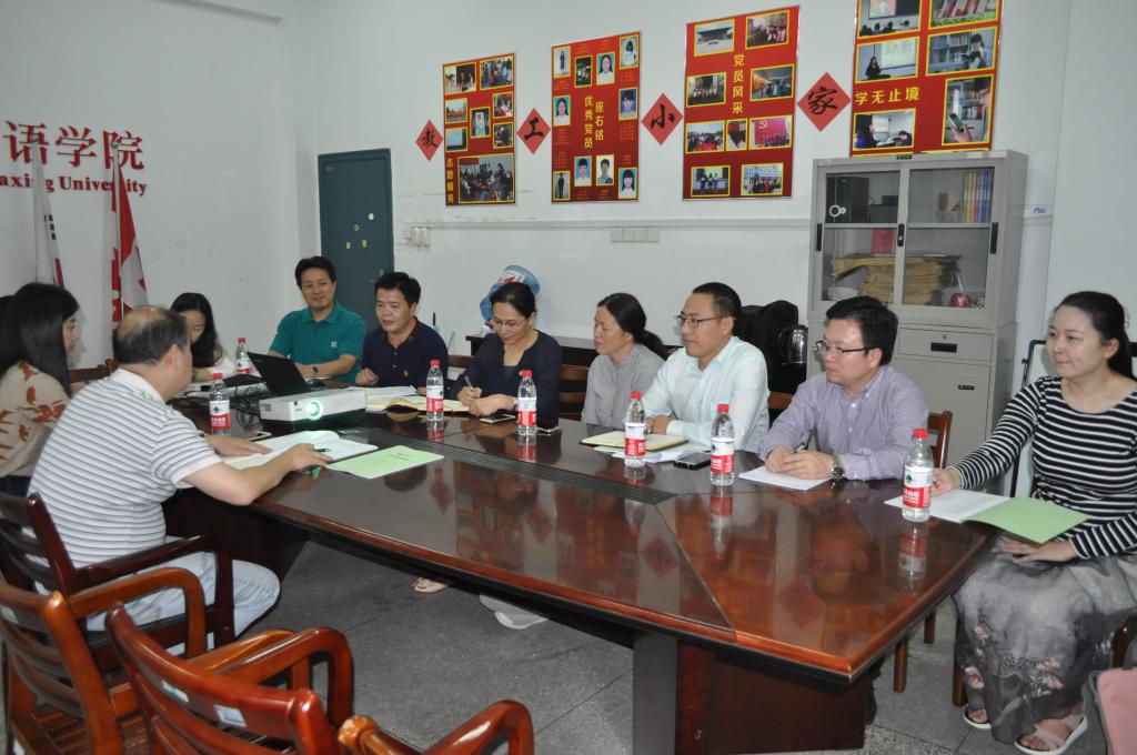 9月26日下午,本科教学工作审核评估预评估专家浙江师范大学教务处处长赵雷洪教授到网上赌场 考察,考察会议在外语楼101会议室召开。会议由网上赌场 院长唐艳芳主持,网上赌场党政 领导、系部主任、教师代表、教学秘书等出席。