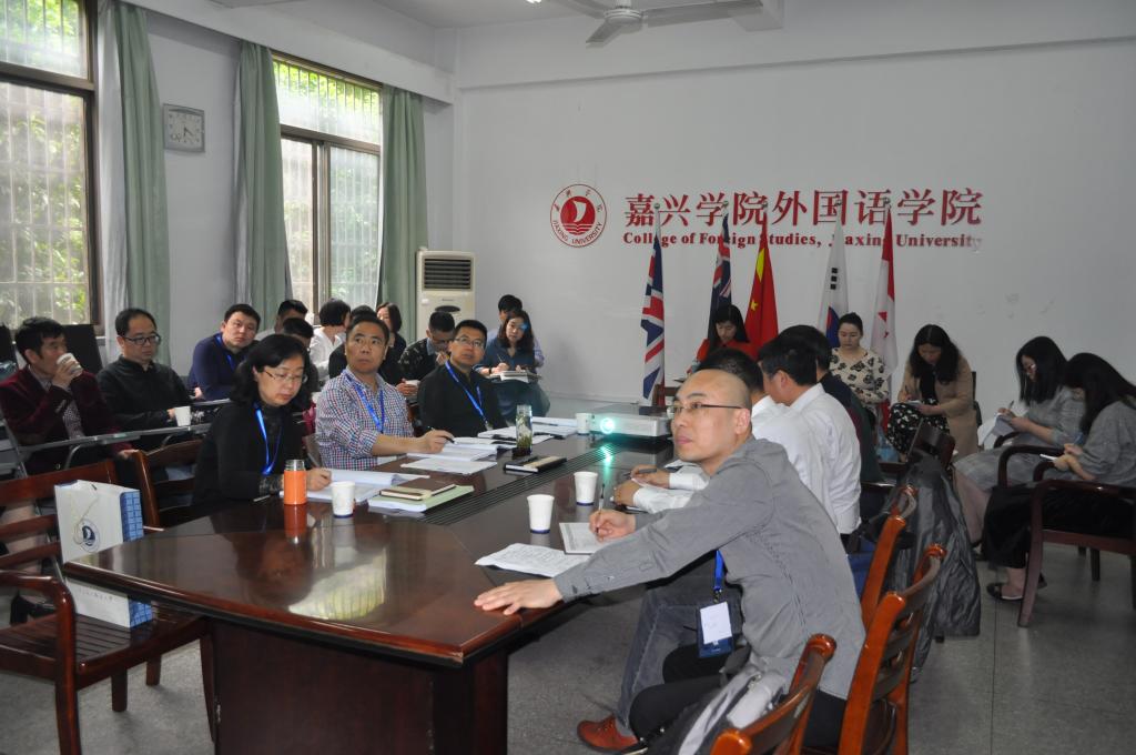 4月23日上午,以浙江树人大学金劲彪教授为组长,浙江师范大学葛永海、洪明教授为专家组成员的嘉兴学院本科专业预评估第三专家组一行3人,对网上赌场 、文法学院的英语、日语、法学、汉语言文学、汉语国际教育共五个专业开展校内本科专业预评估工作。评估专家与学院见面会在外语楼101会议室召开,会议由网上赌场 副院长喻锋平主持,专业负责人、系部主任、教师代表、教学秘书等出席。、