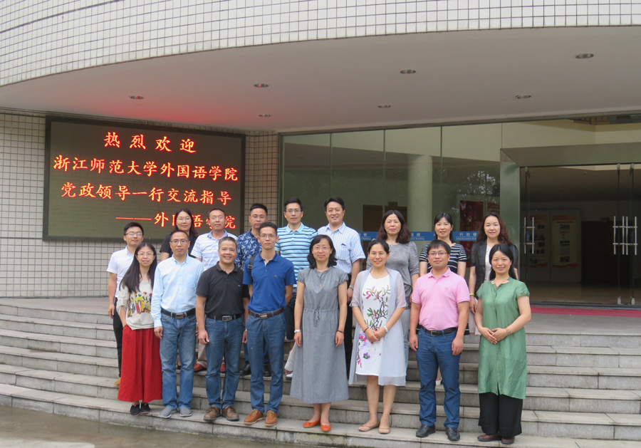 2017年6月26-27日,浙江师范大学网上赌场 党委书记俞明祥、院长洪明、党委副书记林凌斌、副院长胡美馨、日语系主任徐微洁、翻译系主任李建军、大外部主任骆巧丽、教务办主任颜文钦、院办主任郑基一行9人来我院考察交流。