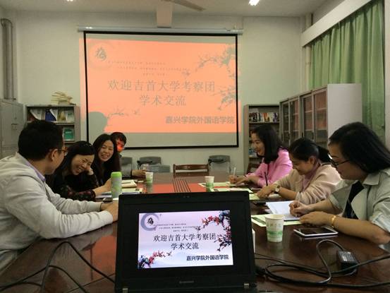 2016年4月21日下午4点,湖南吉首大学张家界学院三位教师到网上赌场 进行了调研。网上赌场 副院长喻锋平代表学院对调研组老师的到来表示了热烈欢迎,并全程参与了此次交流活动。会议首先由网上赌场 大学英语部主任蒋宇红老师对大学英语公共基础课程的改革发展进行了全景式的介绍;接下来由英语系杨泓主任对英语系在新课标要求下的一些发展思路进行了交流。最后喻院长再次代表网上赌场 向调研组老师表示感谢,肯定此次交流活动对我院英语教学受益匪浅,并表示有机会一定到吉首大学张家界学院造访,促进院际交流,共同提高英语教学!
