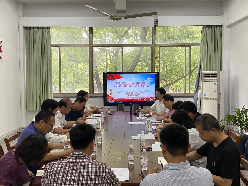 6月10日下午,网上赌场 与设计学院、建筑工程学院召开以“深入学习中共中央、国务院印发《深化新时代教育评价改革总体方案》”为主题的二级党委理论中心组联学会。副校长杨培强出席会议,会议由网上赌场 党委书记周钰主持,设计学院院长韦浩、建筑工程学院院长王恩茂、网上赌场 副院长喻锋平分别作主题发言,三个教学单位全体二级党委理论学习中心组成员参加联学会。