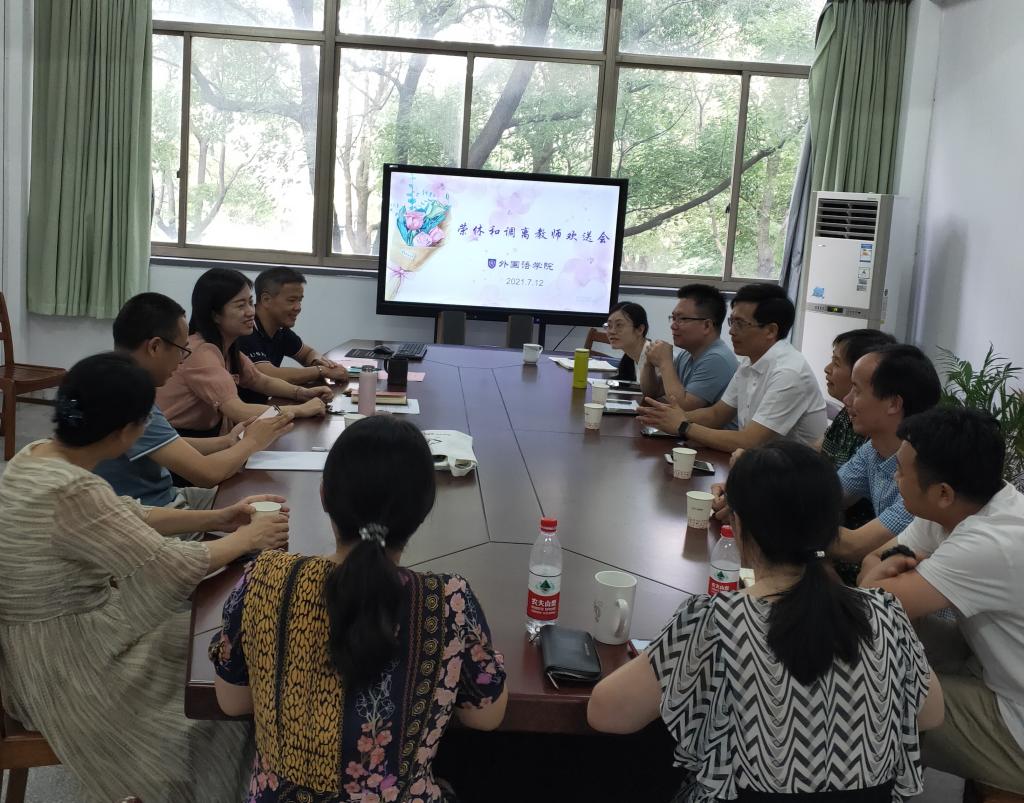 7月12日下午,网上赌场 在外语楼204会议室为光荣退休的周振行、张文妮老师和调离网上赌场 教师岗位的高万全老师举行欢送会。欢送会由学院党委书记周钰主持,荣休和调离教师、网上赌场党政 班子成员、行政四办主任和教师代表参加会议。