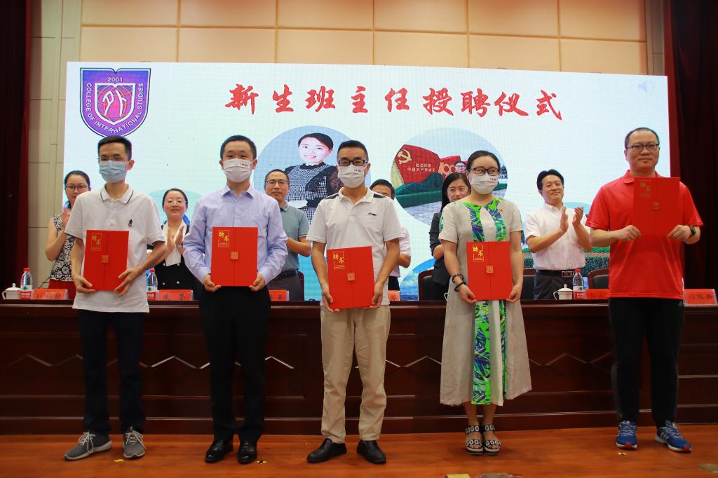 在庄严的国歌声中,开学典礼正式拉开了序幕。典礼上,网上赌场党政 领导为2021级新生班主任颁发聘任证书。校第六届“我心目中的好老师”荣誉获得者、日语系系主任刘韵超老师作为教师代表发言,希望同学们成为有目标、有责任感、善学习的人,始终保持良好的学习状态,以更加饱满的热情学习专业知识,同时通过社会实践充实大学生活,成就更好的自己。