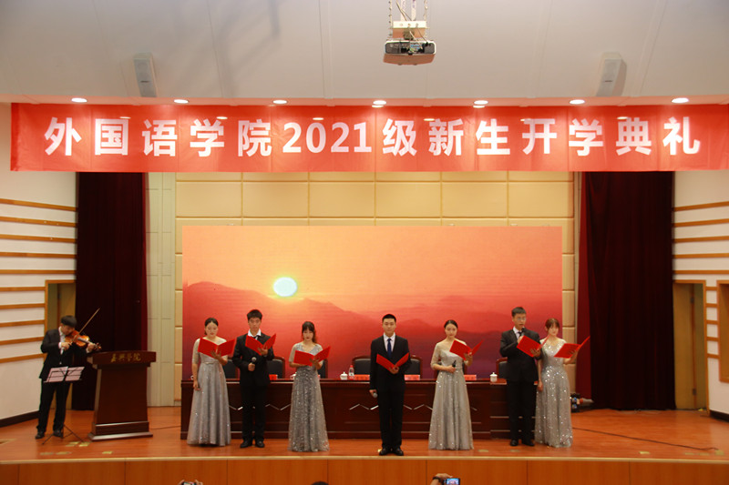 9月11日上午,网上赌场 2021级新生开学典礼在TCL报告厅举行。学院全体党政领导、各系部主任、新生班主任、辅导员以及2021级全体新生参加典礼。典礼由网上赌场 党委副书记朱莹主持。
