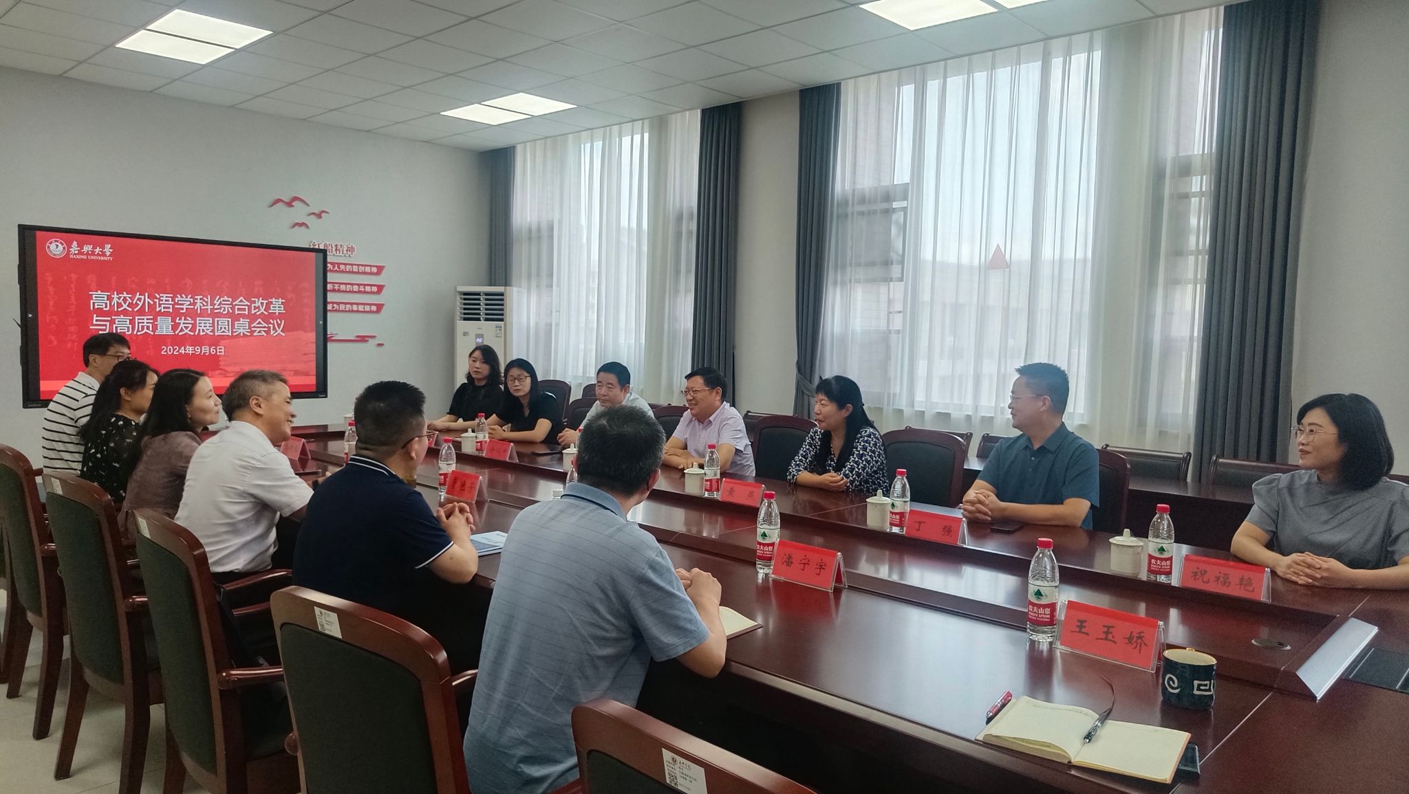 9月6日,网上赌场 在兴德楼南楼516会议室举办高校外语学科综合改革与高质量发展圆桌会议。会议邀请南京高校的专家学者和蓝鸽集团的技术专家共同探讨在教育信息化大背景下外语学科的综合改革与高质量发展问题。会议由副院长邱佳主持。