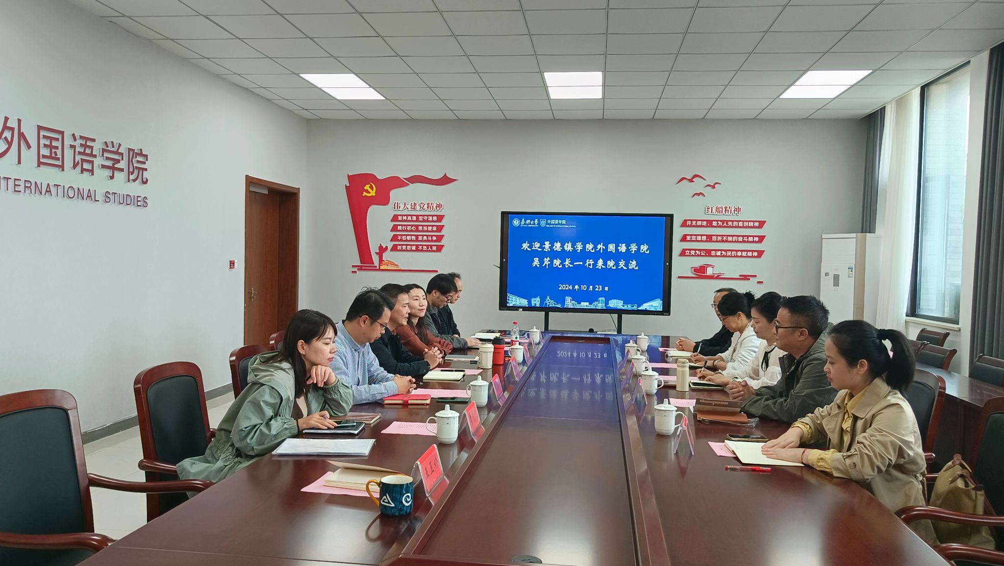10月23日,景德镇学院网上赌场 院长吴芹一行5人来院调研交流。院长唐艳芳、副院长邱佳、党委副书记张啸峰及学院骨干教师参加交流会。