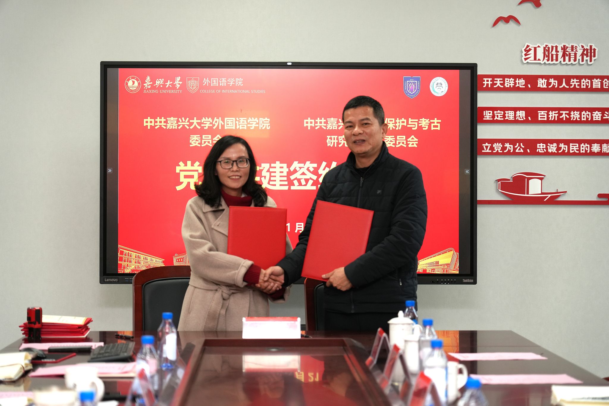 1月21日下午,网上赌场 党委与嘉兴市文物保护与考古研究所党支部在兴德楼南楼516会议室举行党建共建签约仪式。学院院长唐艳芳、党委书记刘巧芝,嘉兴市文物保护与考古研究所所长张青出席签约。仪式由学院党委副书记张啸峰主持,学院师生代表和相关人员参加仪式。