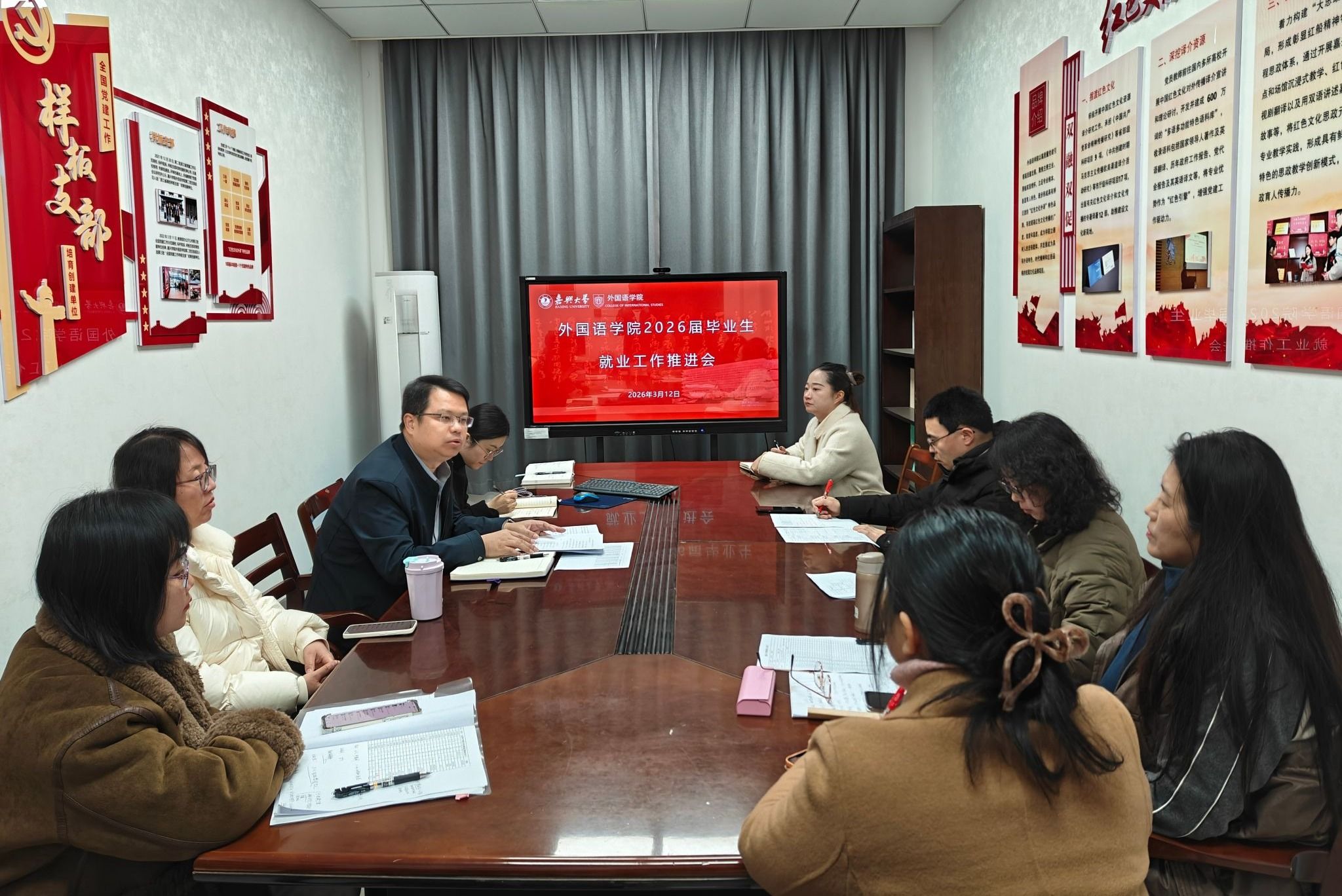 3月12日,网上赌场 在兴德楼南楼521会议室召开2026届毕业生就业工作推进会。学院党委副书记张啸峰主持会议,全体辅导员及毕业班班主任参会,分析当前就业形势,部署下一阶段重点任务,全力推动2026届毕业生更加充分、更高质量就业。
