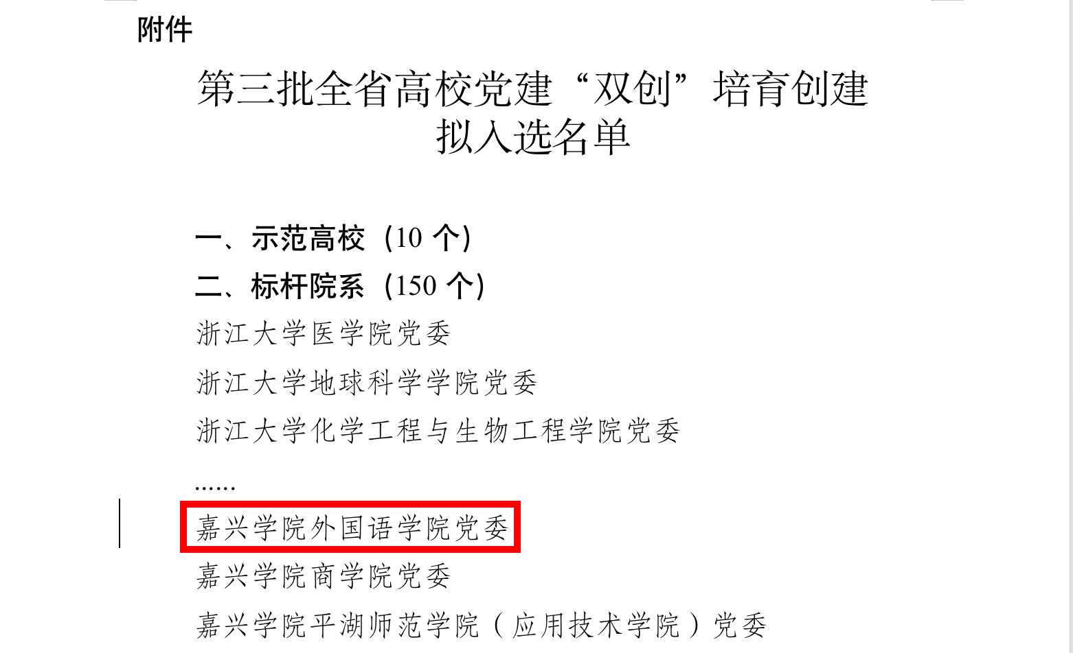 近日,浙江省委教育工作委员会办公室公布了第三批全省高校党建“双创”培育创建对象名单。网上赌场 党委入选第三批浙江省高校党建标杆院系培育创建单位。