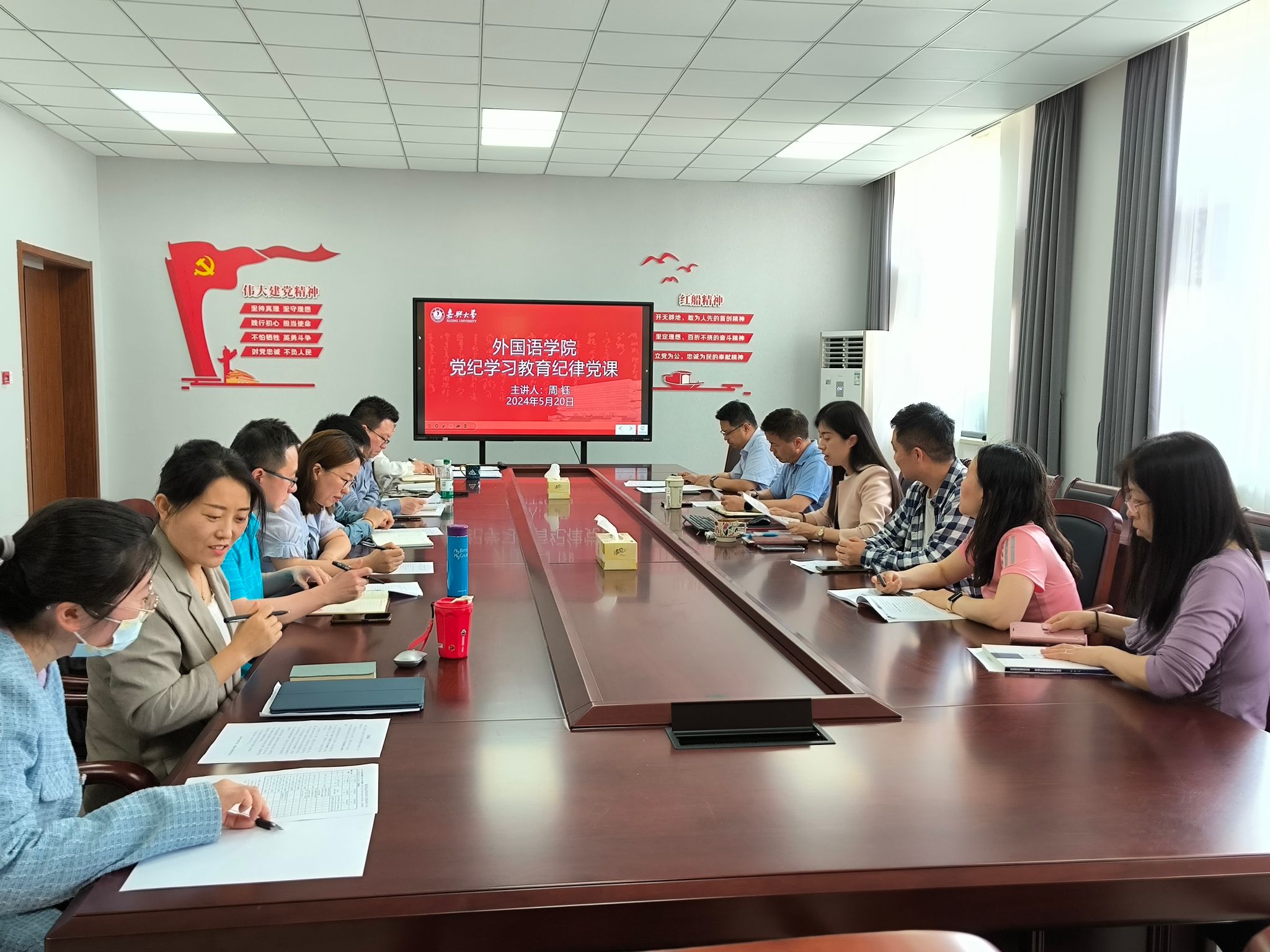 5月20日下午,网上赌场 在兴德楼南楼516举行党委(扩大)会议暨党纪学习教育纪律党课。纪律党课由学院党委书记周钰主讲,网上赌场党政 领导班子、科级干部、党支部书记和系部主任参加学习会。