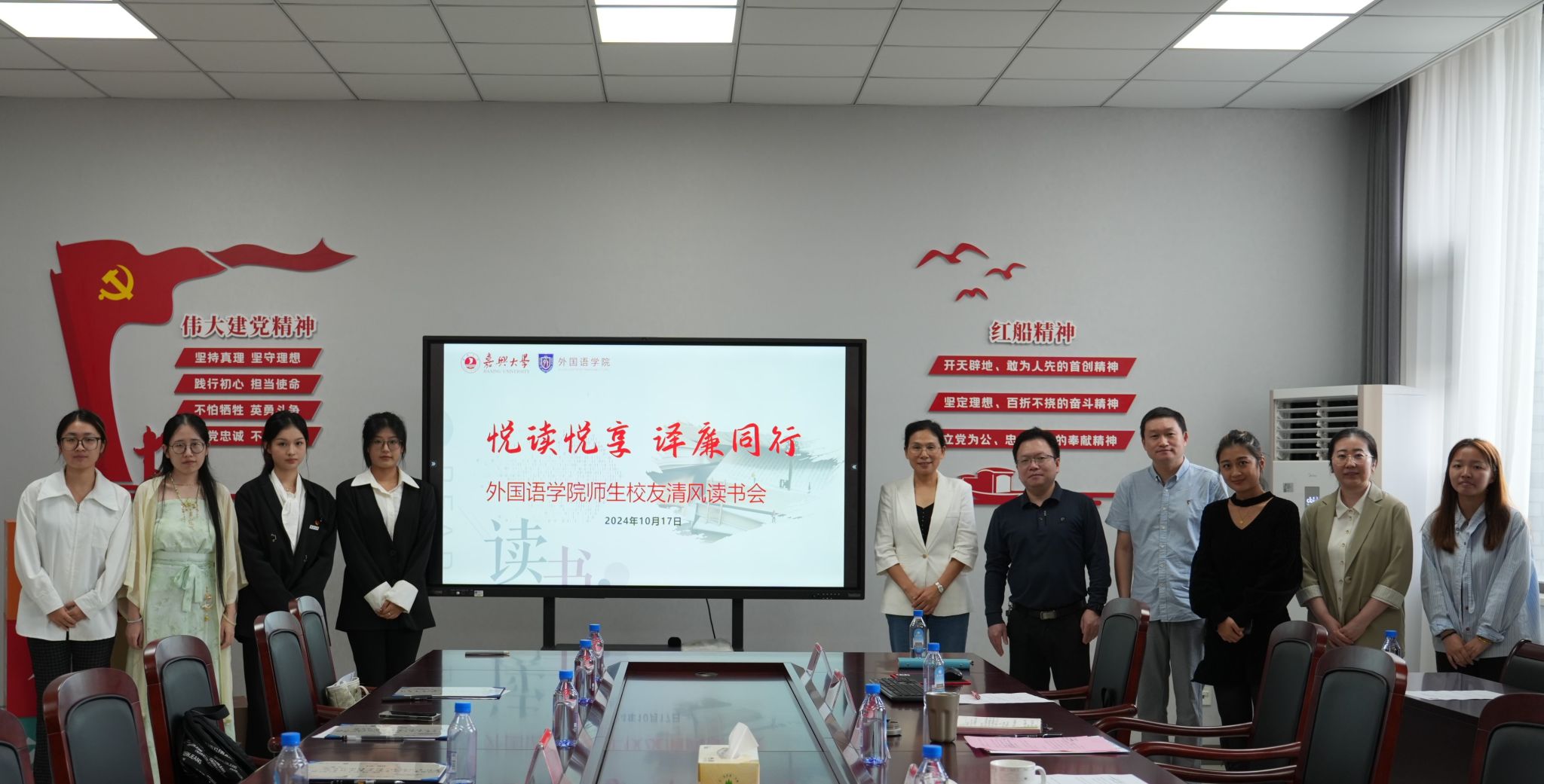 10月17日下午,在学校办学110周年校庆日来临之际,网上赌场 在兴德楼南楼516会议室举行主题为“悦读悦享·译廉同行”的师生校友清风读书会。校党委委员、纪委书记、监察专员陈新友到会指导,校纪检监察室(巡察办)副主任杨碧瑜、网上赌场党政 领导、师生代表、校友代表参加了本次活动。活动由学院党委书记周钰主持。