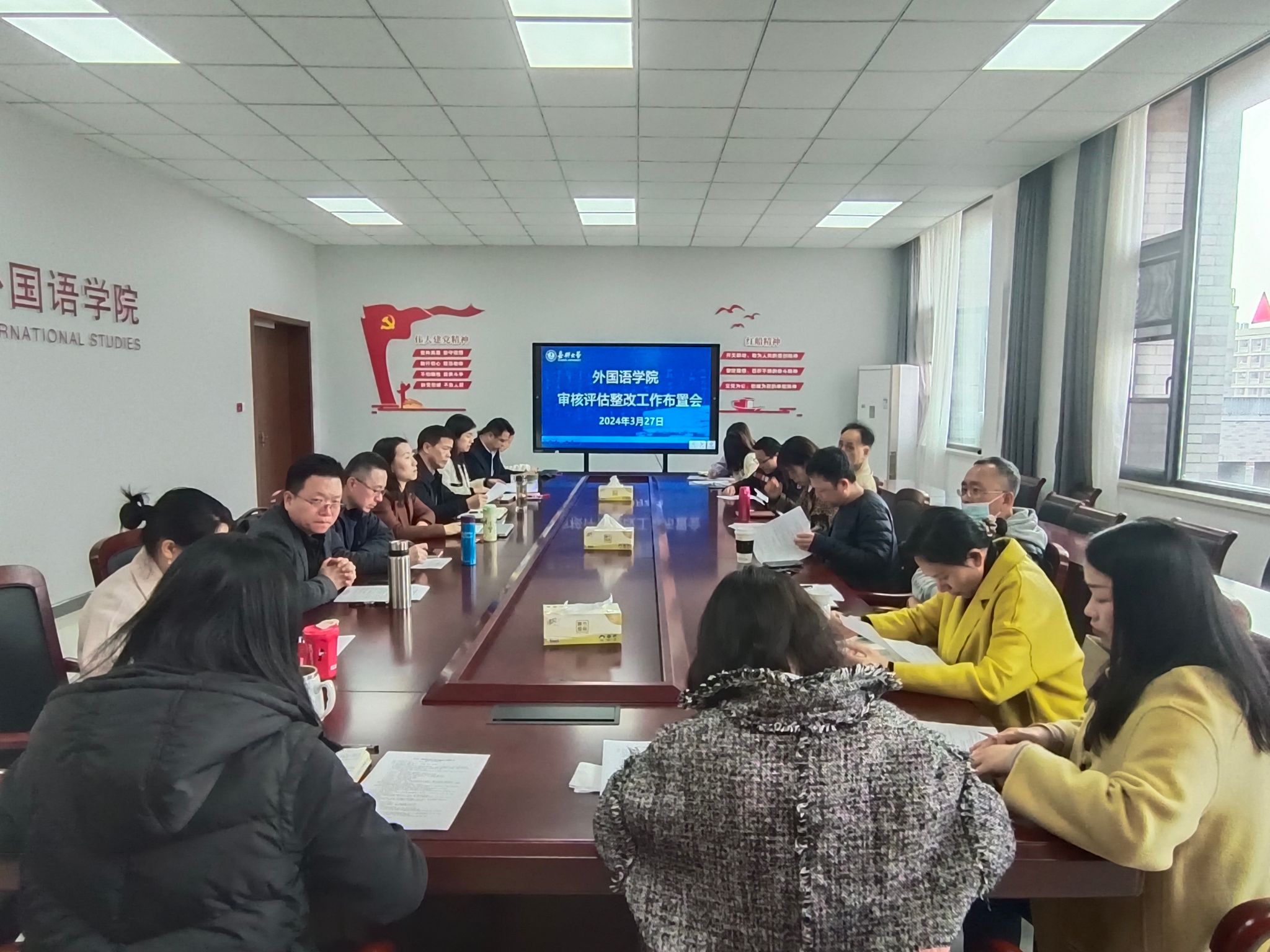3月27日下午,网上赌场 在兴德楼南楼516会议室召开本科教育教学审核评估整改工作布置会。网上赌场党政 领导班子成员、专业负责人、系部正副主任、教研室主任、教学督导和教学管理人员参加会议,会议由院长唐艳芳主持。