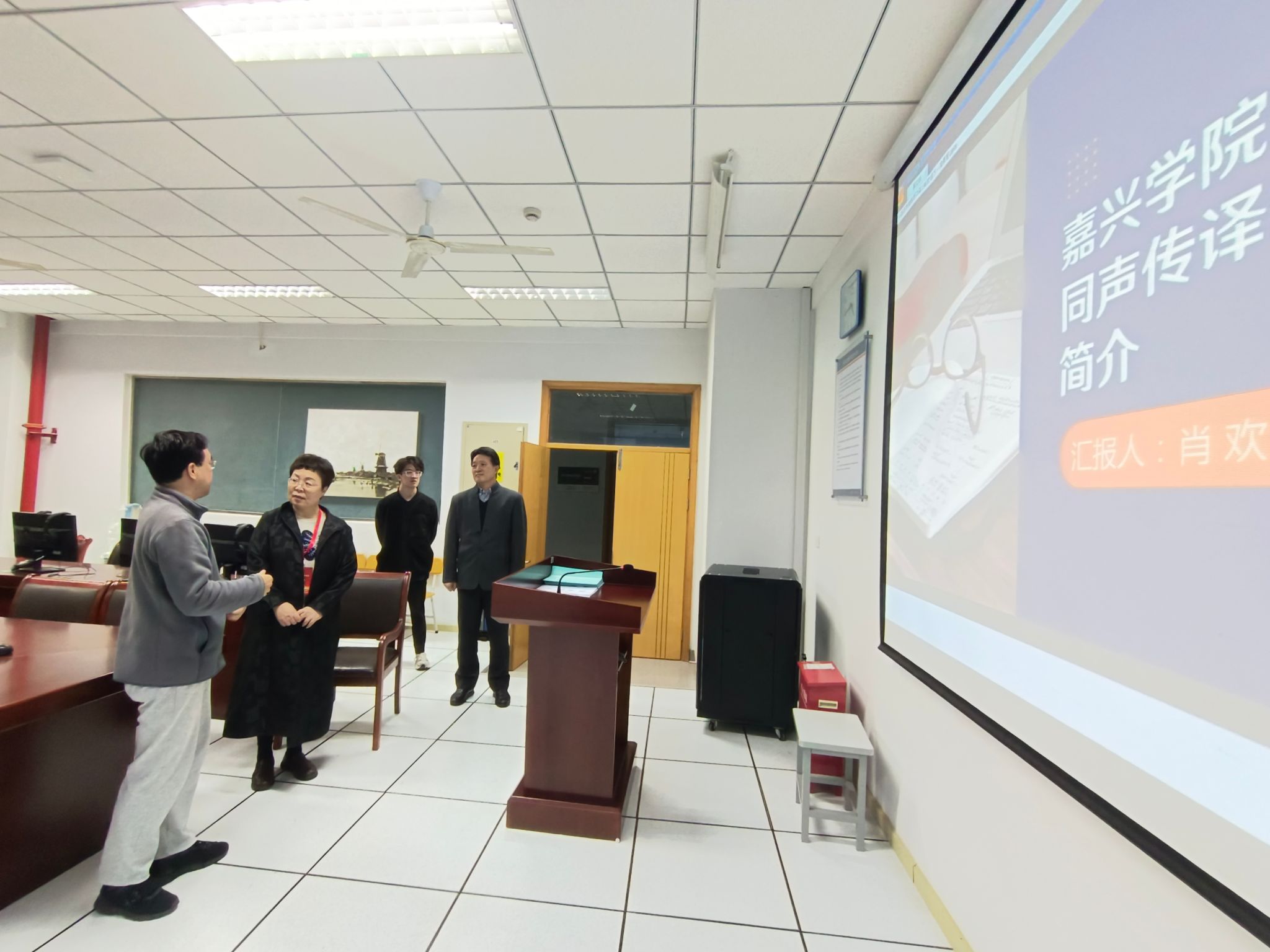 在听取汇报后,岳慧兰对学院在专业建设、实践教学、创新创业教育、教学资源与利用等方面提出了建议,希望学院梳理存在的问题,提出具有学院特色的整改措施。之后,岳慧兰查阅了学院的试卷、毕业论文(设计)、教学活动记录等教学基本文件资料,走访考察了省级重点建设实验教学示范中心,参观了虚拟情境录播室、同声传译实验室、虚拟仿真实验室等实践教学场所,并现场观摩了由师生共同展示的国际会议志愿者虚拟仿真实验项目。